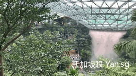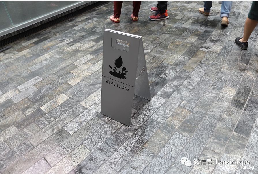 除了美得不可一世,星耀樟宜还尽显对来宾们的贴心:瀑布旁设有标识,提醒大家地上湿滑,走路小心。