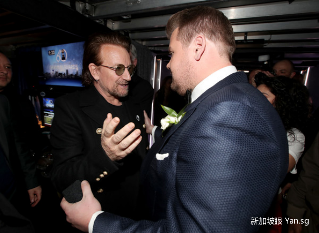 ▲Bono与英国著名喜剧演员 詹姆斯·柯登 见面
