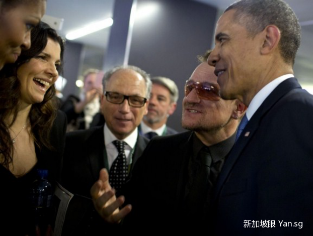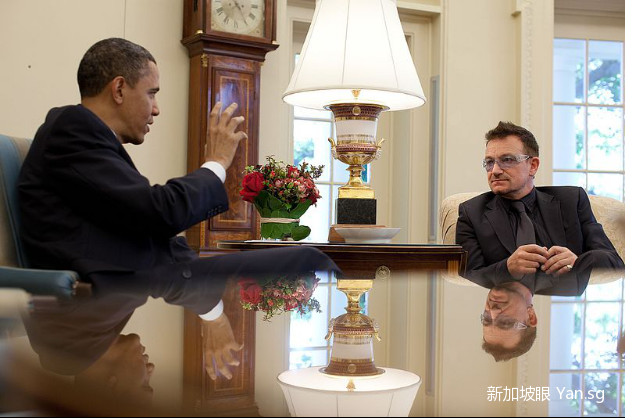 ▲Bono 2010年做客白宫和美国前总统奥巴马会晤