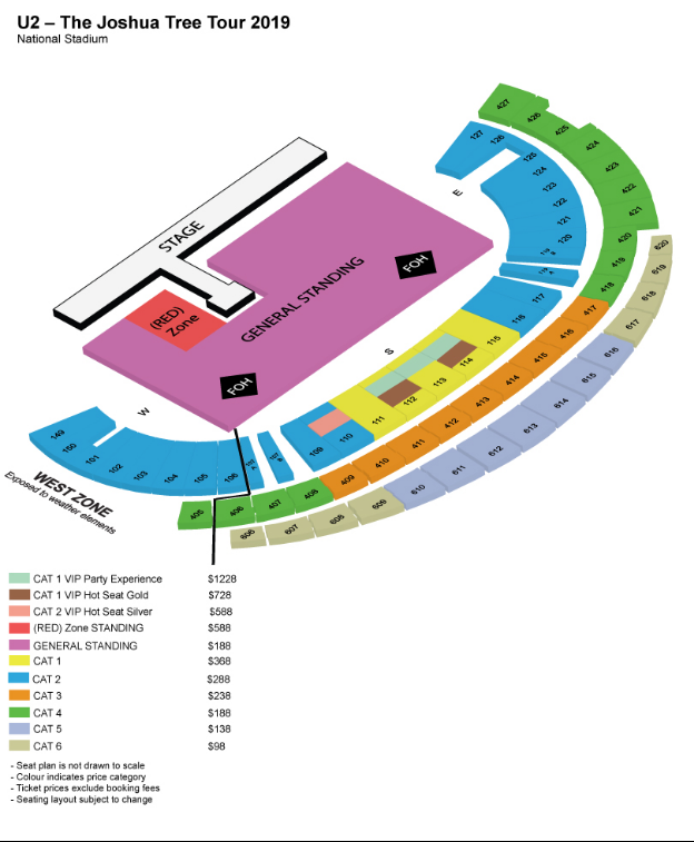 7.门票的部分款额将捐给Bono创立的Product RED公司,善款将帮助全球防治艾滋病,结核病以及虐疾基金筹款