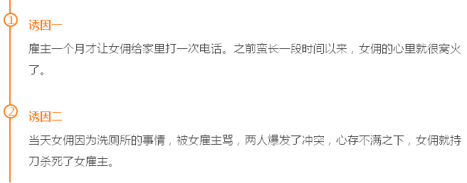 ▲凶杀过程看完了,大家一定好奇~~到底是什么原因,让年纪轻轻的女佣对年纪大到足够当她妈妈的雇主下此毒手?