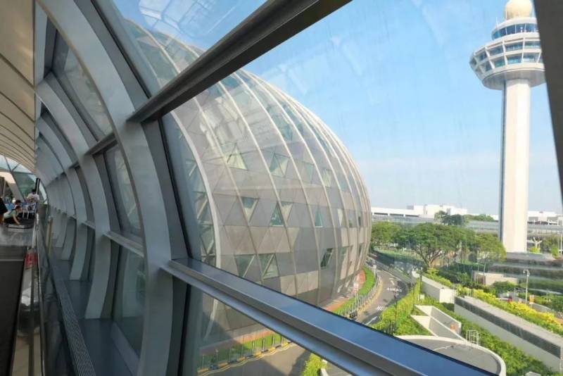 星耀樟宜的英文名是Jewel,就建在机场边上,有专门的通道和T1 、T2以及T3分别相连,走过去也就5分钟的路程,十分方便。通往Jewel的通道就在我们的酒店边上,出门右转就是。