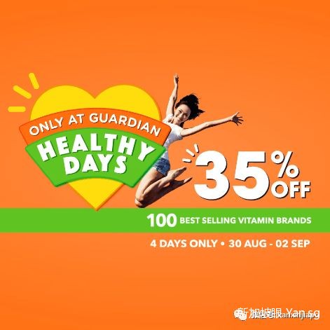 Guardian健康日促销,可享受100个畅销维生素品牌35%的折扣。此外,每日优惠低至55%。