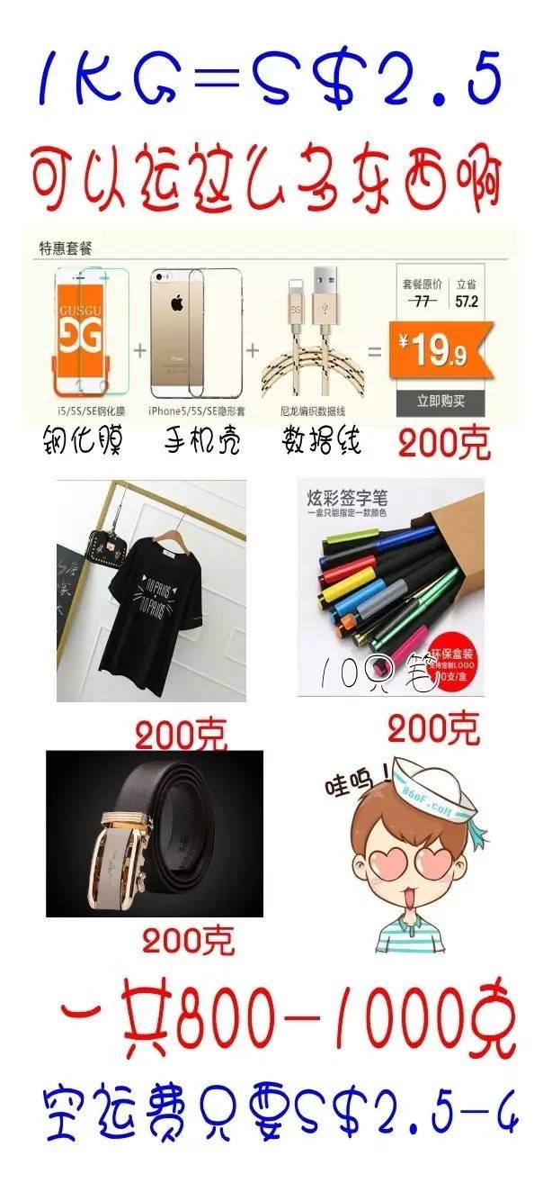 这么多东西只按1公斤计费,运费2.5-4新元。