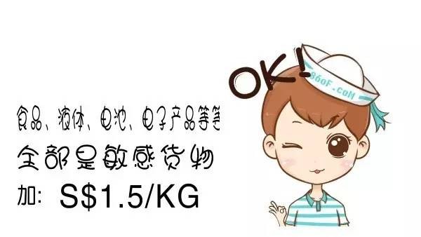 如果是空运这些敏感物品: 粉末、液体、膏状、药剂、种子、电池、食品、品牌、电子产品,全部加1.5新元。