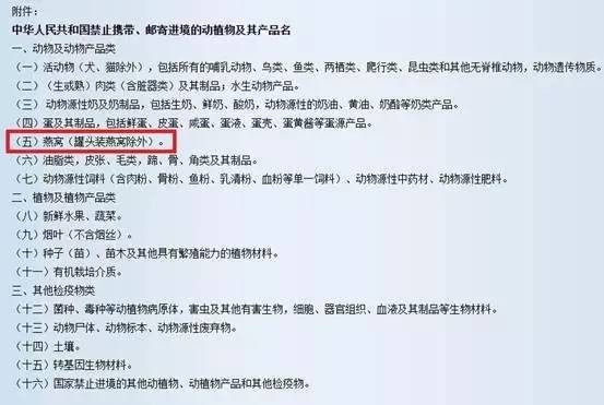 所有燕窝都不能入境?