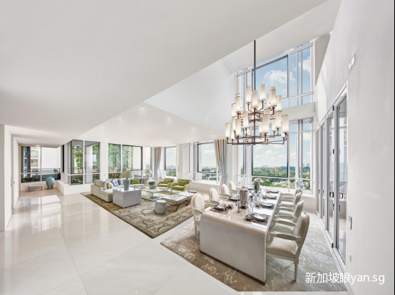 排在其后的则是The Marq on Paterson Hill的顶层单位,面积约1万7642平方英尺。这套豪宅内的家具、壁纸、餐具和皮革软垫等皆是名家精心设计和定制,符合现代奢华潮流。它也设有直达停车场的私人电梯。华利世家河The Marq on Paterson Hill这两套豪宅价格曾公开要价分别为1.08亿新币和1.28亿元新币。