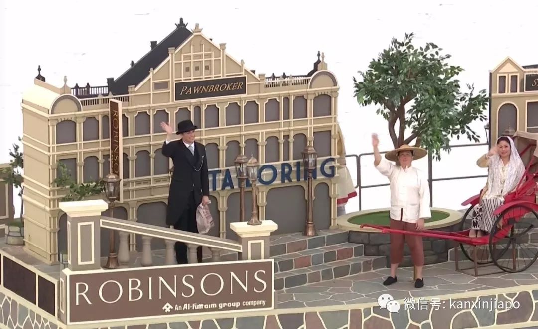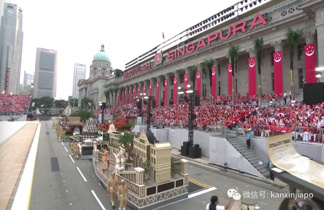 ▲(李显龙步入观众席)接下来登场的是18辆别致的花车,诉说着新加坡自开埠以来200年的历史。