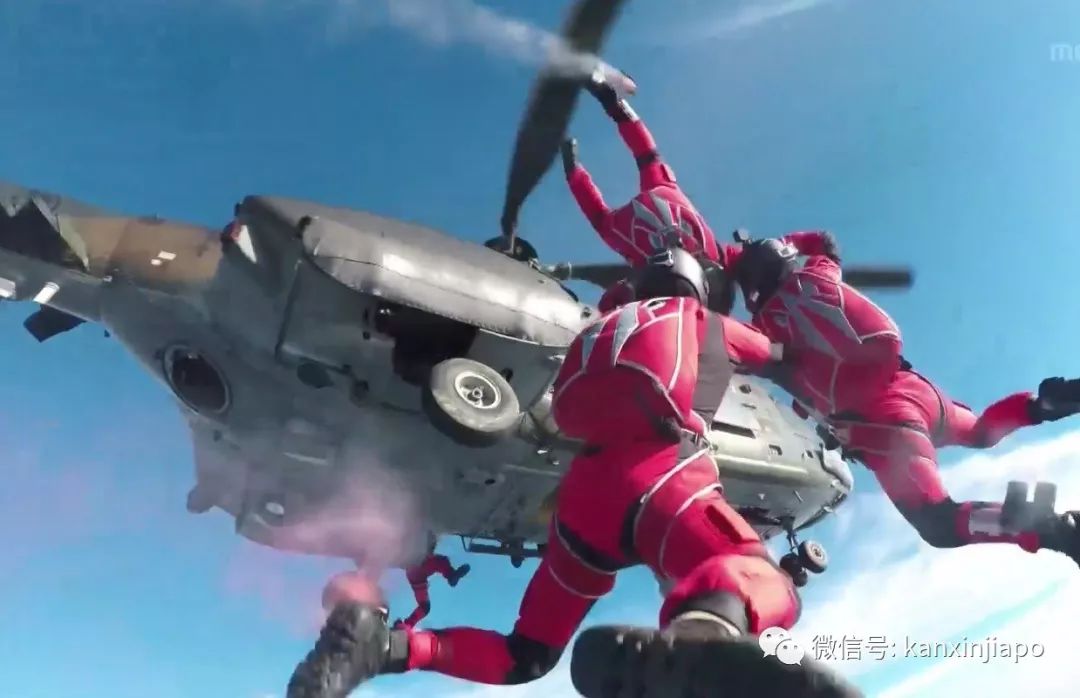 红狮跳伞队从1万多英尺(相当于50栋20层的政府组屋叠在一起)的空中跳下,以每小时200公里的速度自由下落,持续一分钟!