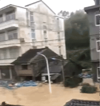 西瓜都被冲走了……浙江仙居大战乡的标志性建筑,一座将军战马雕像也被卷入洪水中,市民还在旁边大喊:再见了……