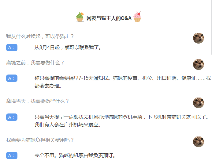 看来这位网友要把爱若珍宝的喵星人大迁移的决心,真是很大!有没有最近要从新加坡去中国广州的小伙伴,愿意成人之美,帮她完成心愿呢?可以在评论区报名哦!