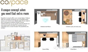 Cospace户型概念:已经过商标注册的青建地产CoSpace“构空间”概念,将Utility room与Study room合并,既可以作为工作间、娱乐室、还可以当做儿童房,使3房变4房,4房变5房,自由组合,随意变化,让空间使用效率最大化。更多Cospace介绍请点击: