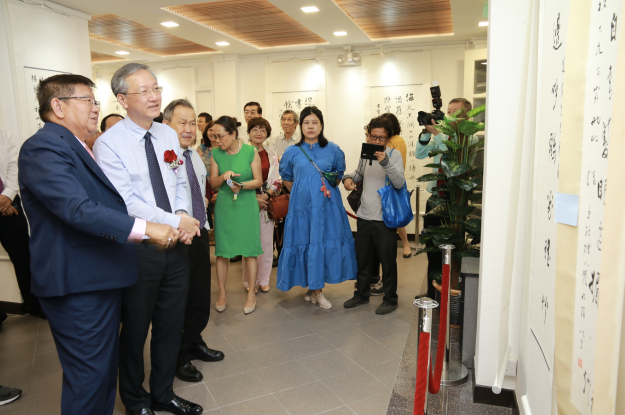 新加坡外交部兼社会及家庭发展部政务部长陈振泉、中国驻新加坡中国文化中心主任肖江华、新加坡文化学术协会会长陈声桂等嘉宾出席“潘受书法展览活动”。