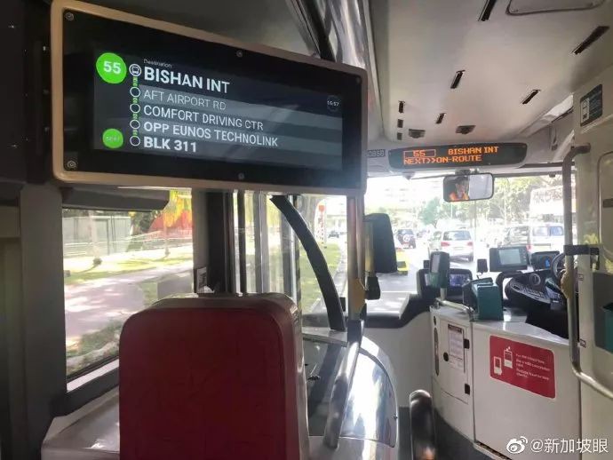有屏幕显示的是SMRT的巴士,大部分SBS的bus没有屏幕显示的。