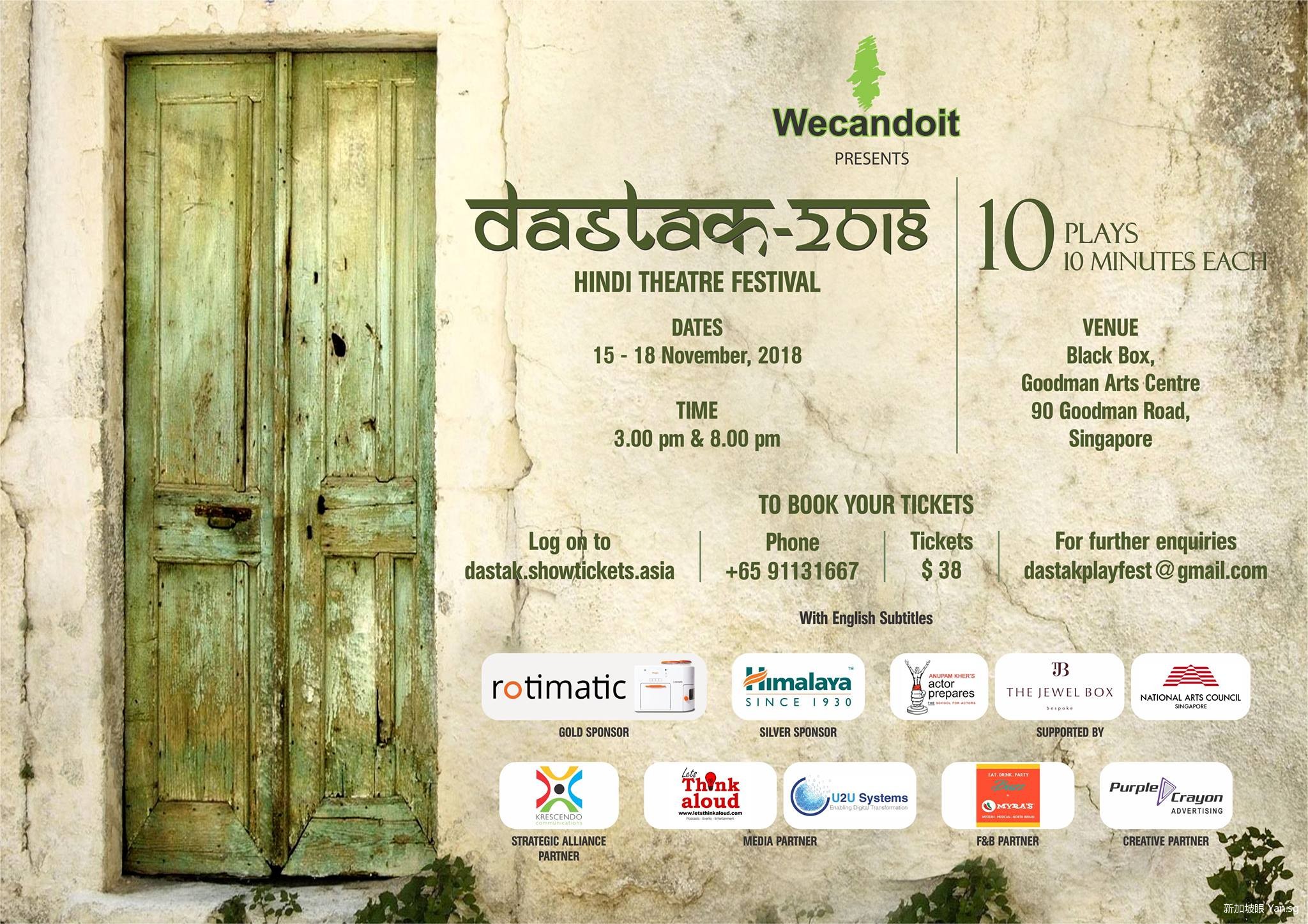 DASTAK Singapore’s first and only 3 day Hindi Theatre Festival to enthral theatre lovers in Asia Pacific region Press Release Date- 49h November,2018