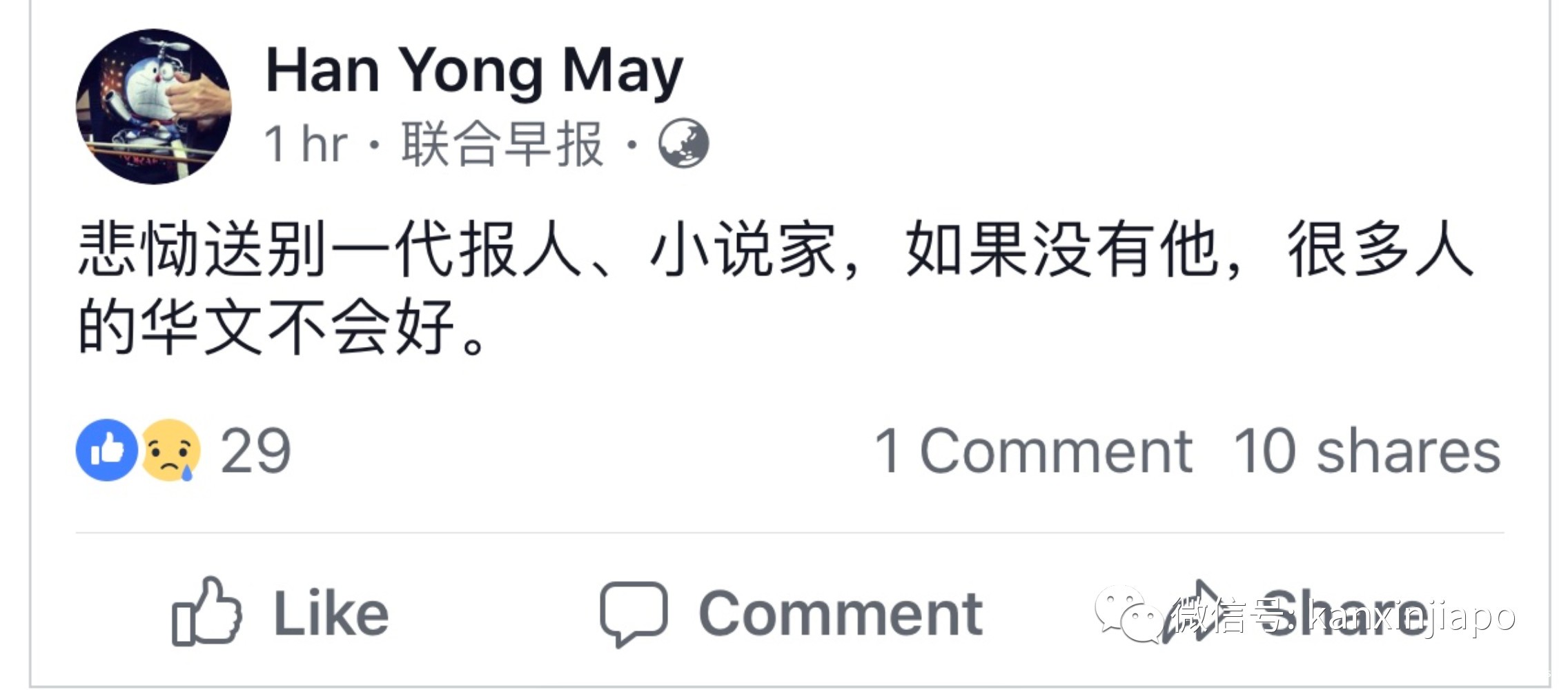 《联合早报》副总编辑韩咏梅,甚至称“如果没有他,很多的华文不会好”。