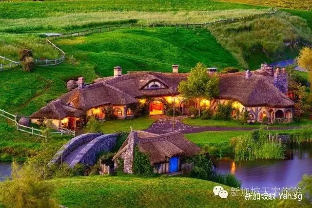 霍比特人村庄:《霍比特》及《指环王》拍摄地。在绿龙酒吧内享用丰盛霍比特自助午餐。