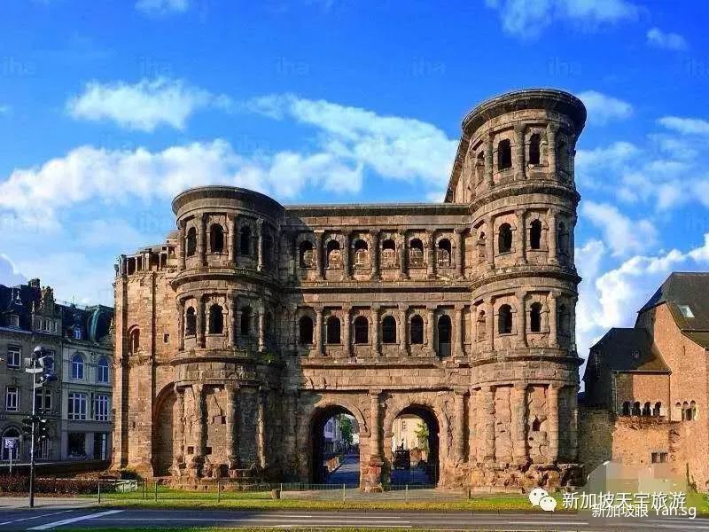 #尼古拉城门 (Porta Nigra,又称黑城门),为古罗马时期的城门,是特里尔城市的象征。尼格拉城门是阿尔卑斯山以北保存最完好的古罗马时代城门,1986 年与特里尔其他古罗马遗址及大教堂一起被联合国教科文组织指定为世界文化遗产。