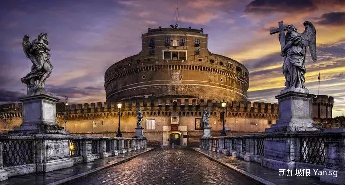 ▲圣天使城堡(Castel Sant’Angelo)是意大利罗马的一座城堡,该建筑位于台伯河畔,邻近梵蒂冈教廷,圣天使城堡首先作为阻止西哥特人和东哥德人入侵的要塞,然后被当作监狱使用,最后改建成一座华丽的罗马教皇宫殿。现在圣天使城堡已成为一座博物馆,也成为当地的旅游景点之一。
