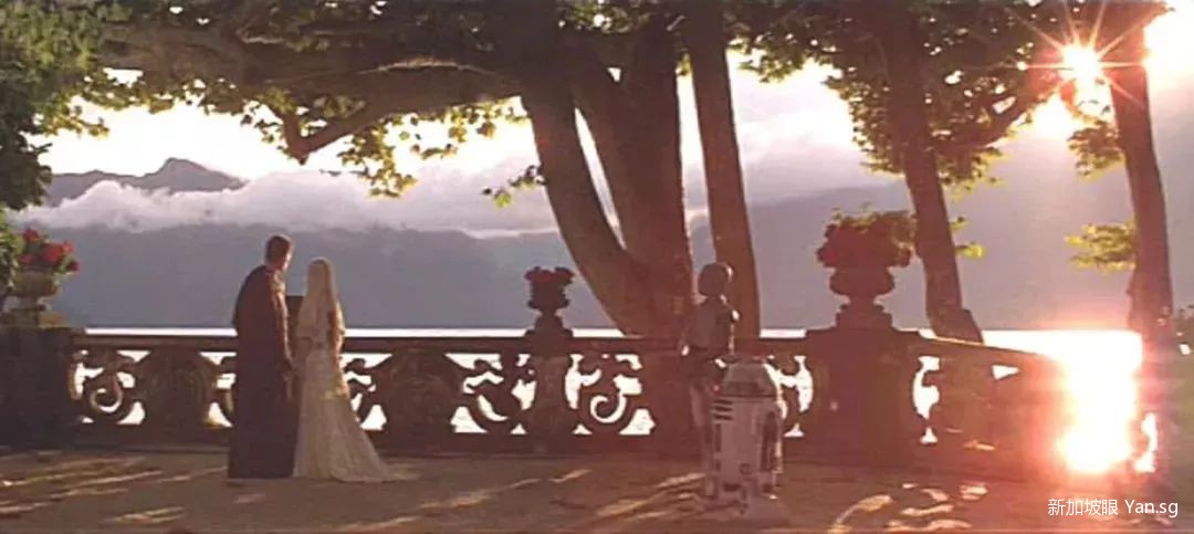▲ 在《星球大战2:克隆人的进攻》的最后,以科莫湖为背景,安纳金和帕德梅深情拥吻。这最浪漫的一幕在意大利的德尔巴比亚内罗别墅拍摄。别墅建于18世纪,坐拥秀美的园林和绝妙的湖区景观,此前作为修道院使用,1988年被指定为意大利国宝。