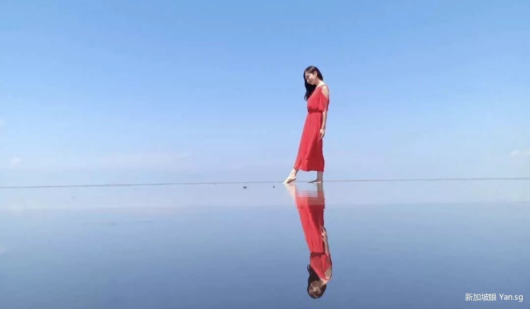 要拍出天空之鏡的效果,就要注意浅滩的水深度,太浅的話其实会看到黃泥色的沙滩,建议再往远一点的地方走去,让水深达到脚踝,拍出來的效果会比较好。