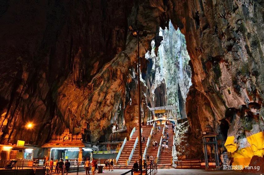 途中芙蓉吃午餐(自费),随后到达吉隆坡参观著名景点黑风洞 ,这里处在丛林掩映的半山腰,是 一个石灰岩溶洞群,需要步行272级陡峭台阶而上。黑风洞前面矗立着一座140英尺高的镀金印度大佛战神穆鲁干 (Lord Muruga)的巨大塑像。黑风洞由 一组三个石灰岩溶洞群组成 ,呈现不同的地质现象和生态环境 ,还能看到石柱、石笋、天坑等喀斯特洞穴地质现象。