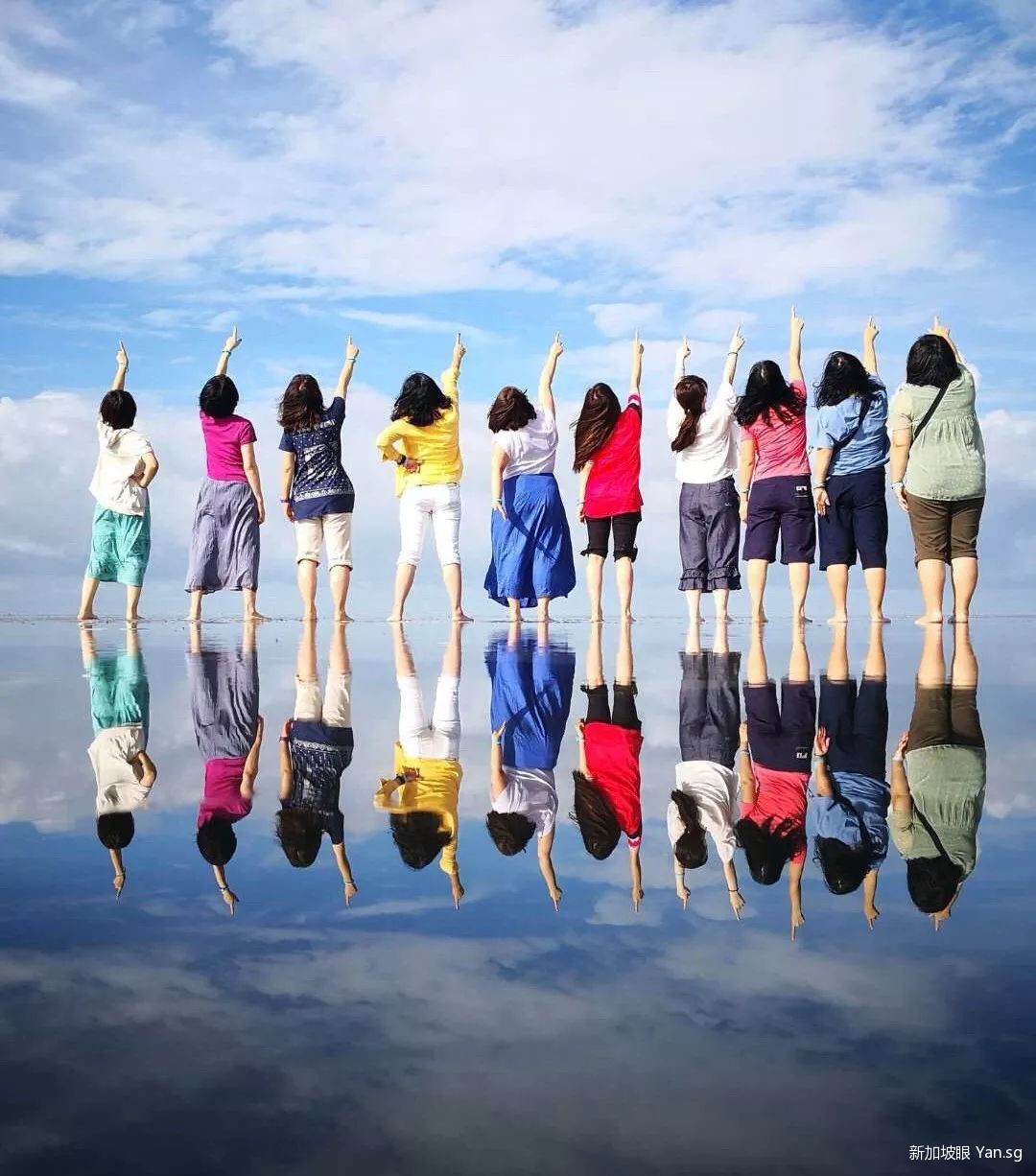 08: 00 Am – 11: 00 Am 抵达目的地传说中的天空之镜,等水退至0.5米,大约是脚踝的深度时,旅客们下船在海面上进行各种活动 。浅滩在艳阳照射下尤如一面会变魔术的镜子 ,可以清楚反射天空倒影,您绝对能拍摄珍贵的作品。要拍出天空之镜的效果,就要注意浅滩的水深度,太浅的话其实会看到黄泥色的沙滩 ,建议再往远一点的地方走去,让水深达到脚踝,拍出来的效果会比较好。
