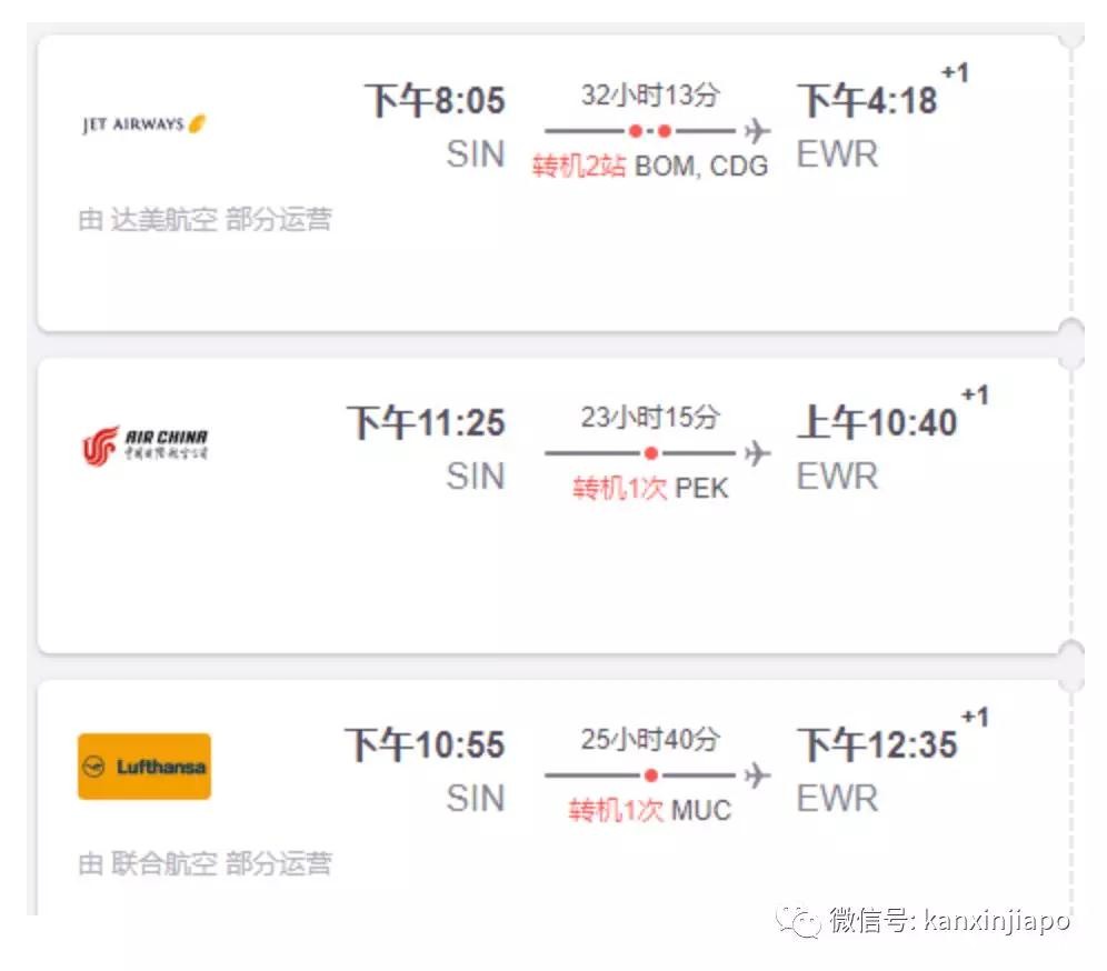 毕竟,之前飞往纽约的航班是这样子的……转机麻烦外,耗时还超过20多小时到30多小时。