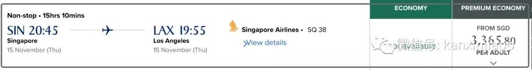 目前的单程票价是这样子的…… 耗时15小时10分钟,票价3365.8新币。