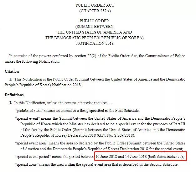 昨天,新加坡政府发布了两则宪报,将6月10日-6月14日美朝峰会期间,列为特殊活动时期。