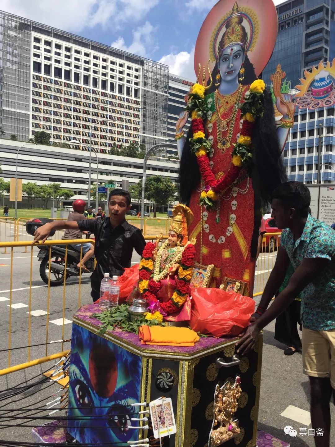 除了虔诚,我感受更多的是整个游行期间印度人之间的亲切和友好,这种人与人之间的亲切和友好,已经不是我第一次在新加坡感受到了。参加活动的有不少妇女,老人和儿童,更多的是男性,年轻者居多,但身处其中,感受不到任何的紧张和防御,身边的人都很祥和,很放松,很快乐。