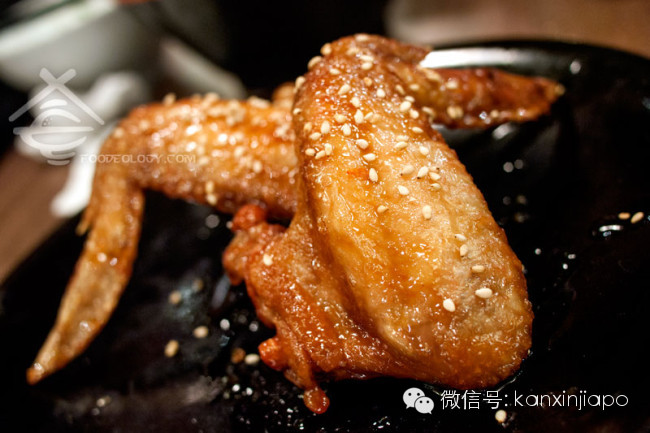 除此之外,为食主义还试了它家的名古屋式鸡翅。这个用甜米酒(味醂,Mirin)加工过的鸡翅,带着浓郁的照烧(teriyaki)味(据说味醂加酱油就可以调出照烧汁),完完全全的日本料理。不知道有些朋友会不会觉得太甜,但对于为食主义来说,吃过清一色味道的鸡翅,这个名古屋风味很是特别呢。