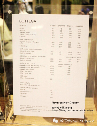说了这么多,送上大家最关心的价格问题,很多中国来的小伙伴一直在抱怨找不到合适的发型师,我对此也深有体会,所以一直都只选择几乎没有技术含量的离子烫,而且一年都不剪一次头发,找到一个让人满意的发型师,对爱美人士来讲是多么重要,Bottega的四国力量,相信总有一款适合你,不满意的话,不过是追求路上一个站;满意的话,那就是旧貌换新颜了。