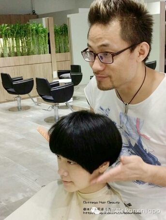 Frank左刀手这个名字,相信很多新加坡的帅哥美女都有些耳闻,我注意到他是因为他和日本人一边比划一边猜的聊天,然后两个人都哈哈大笑其乐融融,而他是听到我一口标准的普通话过来和我聊天的,这不聊不知道,一聊差点抱一抱!我们竟然是老乡!而且我在东丽他在塘沽,都是一条线儿上的!新加坡的天津人实在是很少很少。Frank由于在日本学习过剪发技巧,之前又在一间纯日式salon工作,所以他擅长塑造各种短发造型,我在微博里看过他很多时尚的短发作品,原来今天竟然在这里遇到,Frank左刀手,原来就是你!