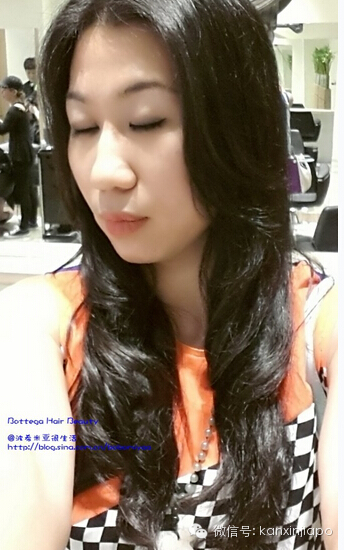 Dean说自己做头发从不言过其实,当天给我做了暂时造型后,我询问如果烫发,能达到这个效果吗?他想了一下说,能达到85%,回家以后,我就把照片广泛发给我妈、我姨、我表妹、我同学、我朋友、我老公、我粉丝,我博客,我QQ,真是自恋无极限了!收到的反馈都是现在看着很好看,不知道烫了以后效果会不会打折?容易打理吗?这也是所有烫发人士关注的共同话题,在几年的直发生涯中,我曾经有一次也烫了卷发,可是只过了不到一周就又烫回直发,因为那位发型师的技术相当坑爹。考虑了一天以后,我带着对Dean的信任和对卷发的贼心不死,周六一大早起床给孩子们准备好三餐,托付给老公,就直奔乌节路了。