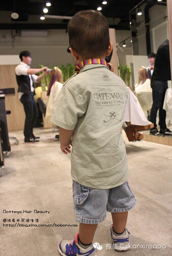 那一天我是带着小胖去的,因为没有想过要做头发,不过修剪和造型的时间并不太久,小胖也非常配合的自己在店里玩了起来。朋友问我,小胖今天是来给gateway的商场代言的吗?看看他的衬衫背面,我才发现,还真是!