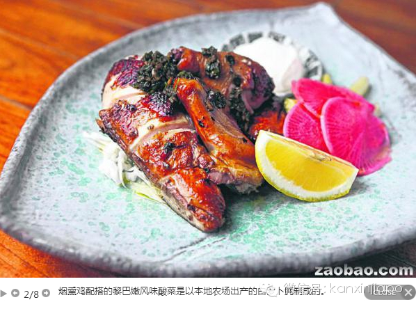 餐馆还把本地农场出产的白萝卜腌制成黎巴嫩风味的酸菜,作为招牌菜烟熏鸡的配菜。就像烟熏火腿要配德式酸菜的道理一样,烟熏鸡配腌萝卜是嫩脆和甜酸的配搭,让口感更为丰富。
