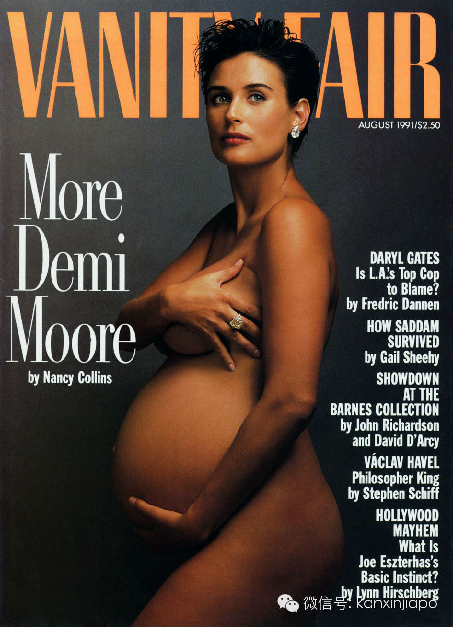 比如:赤裸的约翰连侬(John Lennon)婴儿般蜷缩在大野洋子身侧,拥吻爱妻;照片拍完五小时后连侬即被狂热歌迷枪杀;狄美摩亚(Demi Moore)手捧怀胎八月的便便大腹登上《名利场》,照片当时饱受抨击,却首开各大杂志以女明星裸露孕照作为封面的先例,此风延续至今;尼克松(Richard Nixon)卸任美国总统的新闻摄影,尼克松并未现身于照片中,徒留一条被仓惶卷起、意味深长的红毯;英女王伊丽莎白二世的官方肖像,女王面有愠色,最终却肯摘下象征权威的后冠入镜……