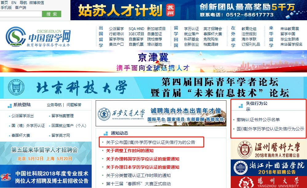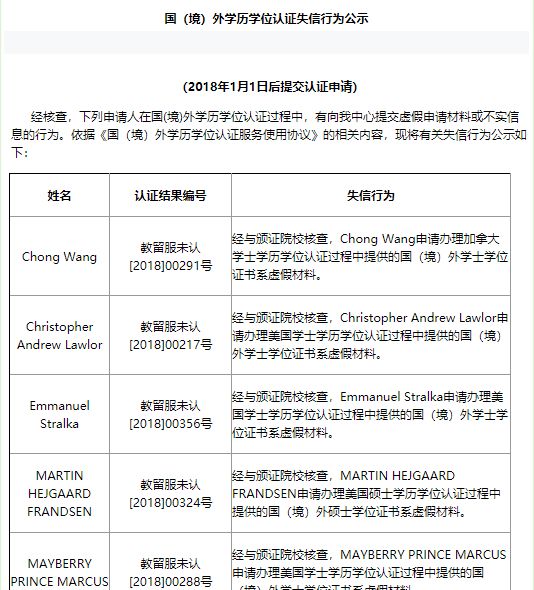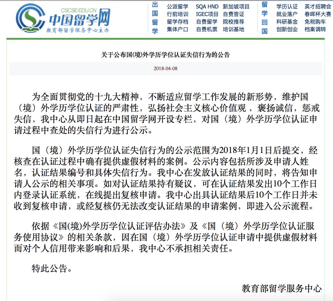 为了维护国(境)外学历学位认证的严肃性,中国官方决定在中国留学网开设专栏,对国(境)外学历学位认证申请过程中查处的失信行为进行公示。