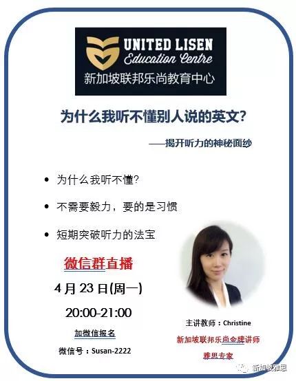 联系我们:地址:37 Middle Road, Uweei Building, #05-00,SINGAPORE, 188946微信:Susan 老师(微信号:Susan-2222 )微信公共平台:“ielts_sg”或“新加坡雅思”