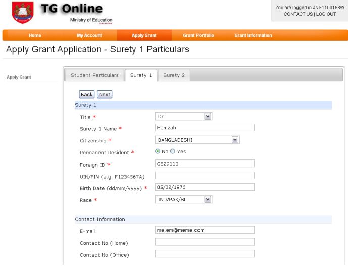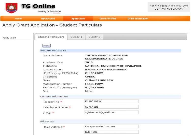 登录TGonline账户之后。点击“Apply Grant”进行申请。详细填写个人信息,护照号,手机,地址,邮箱等信息。