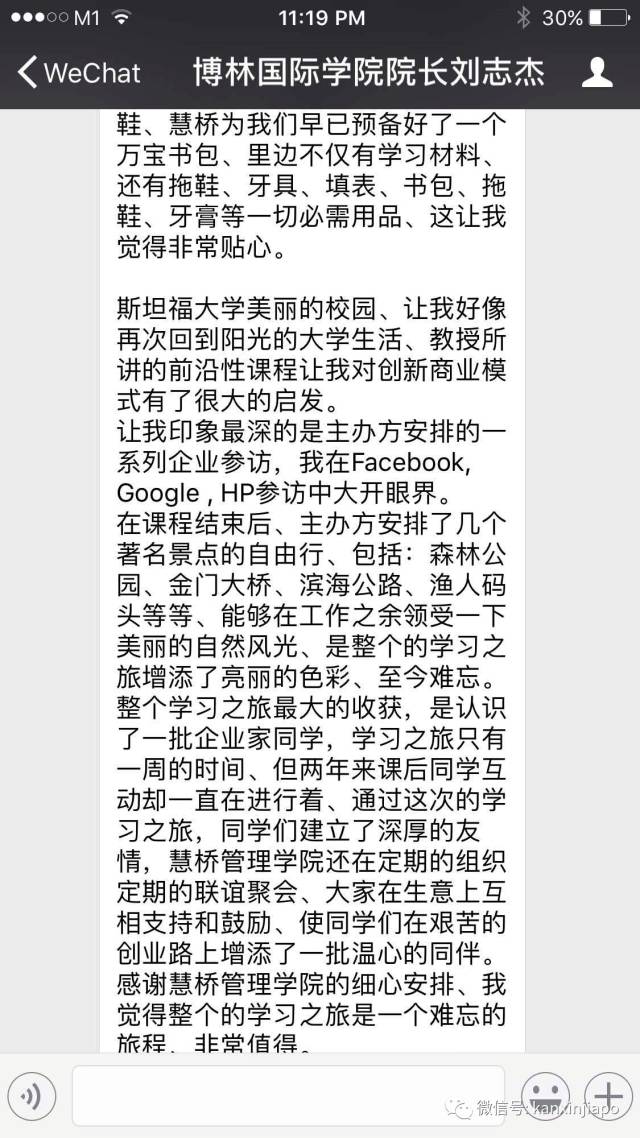 朱董是新加坡一家物流公司的总裁。两年前,他参加了慧桥管理学院主办的硅谷总裁创新力学习营,他说:“这次硅谷的学习,充满知识,充满趣味,脑洞大开。不仅参观了Facebook,Google和HP等著名公司,也结交了一群高素质的总裁朋友。这是我几十年来最难忘的一次学习之旅。”