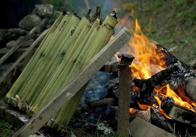 竹筒饭的原料和粽子一样,只有糯米、椰奶和盐,但高难度的地方是一定要用炭来烤!