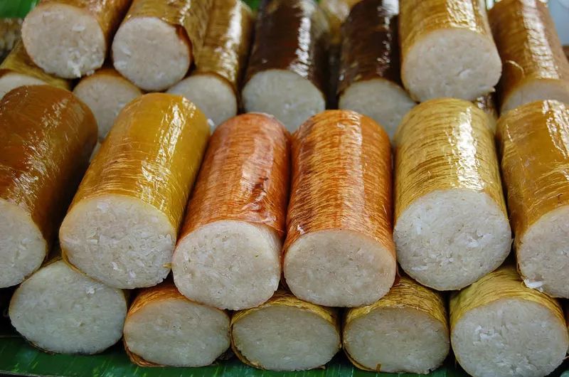 它主要的原料是糯米和椰浆,然后,再用棕榈叶把米饭包好,绑成四方的粽子~(顺便提前给大家说端午节快乐,大家更喜欢马来粽子还是中式粽子?)