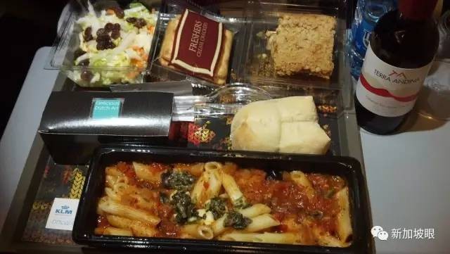 ▲荷兰皇家的经济舱,虽然容器也是塑料的,但看上去就精致了不少,味道也不错,还附带一小瓶红酒!