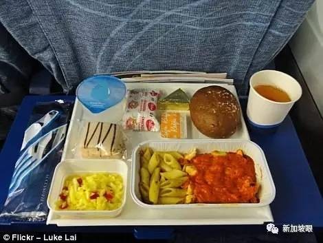 ▲芬兰航空的经济舱,食品就是平均质量,烤通心粉的口味普通。