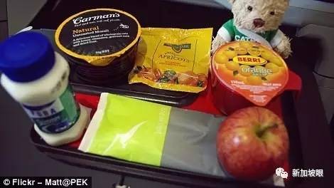 ▲澳洲航空的经济舱早餐包括水果、麦片、牛奶,就是不知道那只小熊是不是也是附赠的啦~