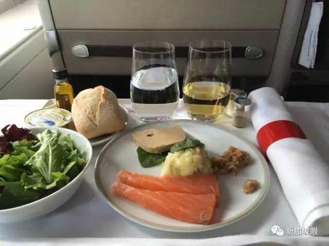 ▲商务舱则提供“book the cook”服务,可以提前从N种菜系里选择自己想要的,摆盘也比较精致……就是这个量,是不是稍微少了一点?
