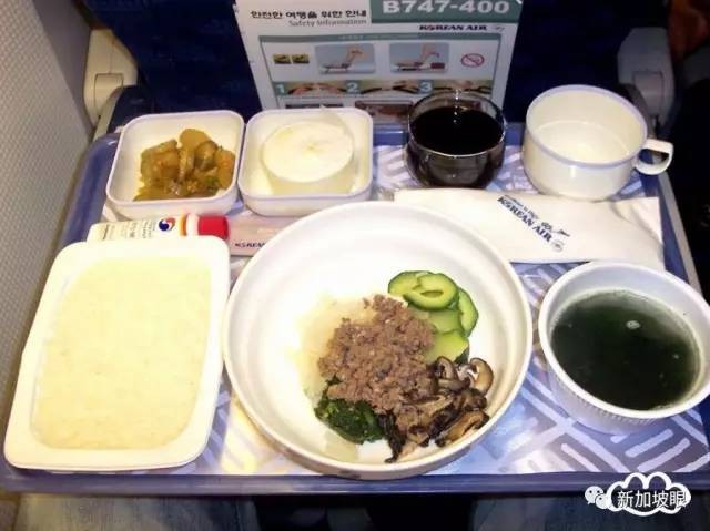 ▲然而这商务餐的韩餐,除了多了个色拉之外,看上去和经济舱并没有太大区别……
