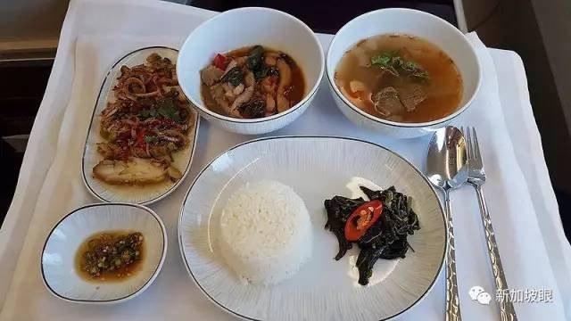 ▲而商务舱,不仅摆盘有所升级,口味也好了不少,还非常有泰国风味~
